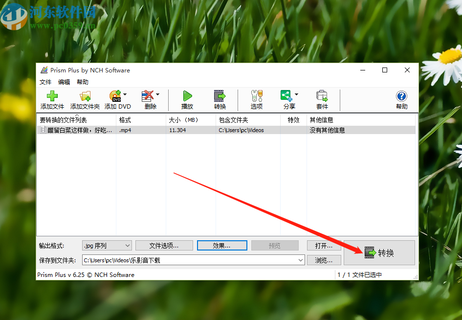 6.设置好文件转换输出的储存位置之后,我们点击软件界面右下角的转换按钮就可以开始将视频转换为jpg序列的操作了。