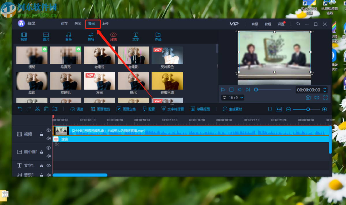 8.调整好模糊区域的大小宽度位置之后,我们在界面的左上方找到导出选项,点击之后可以将添加模糊滤镜的视频导出保存。
