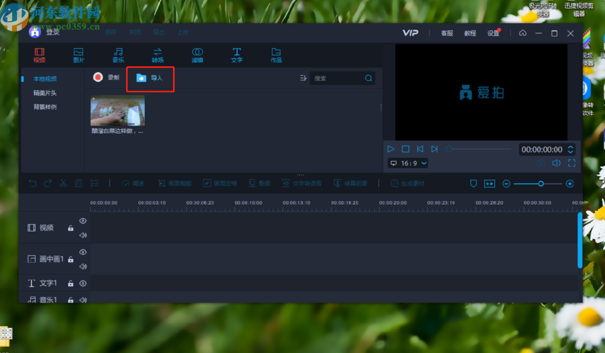 2.进入到编辑视频的功能界面之后,我们在界面中找到导入这个功能按钮,点击之后准备导入想要处理的视频文件。