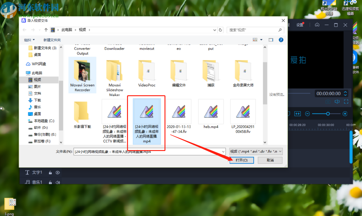 3.点击导入按钮之后,我们在打开的选择文件界面中,选中目标视频文件之后点击界面右下角的打开按钮即可。