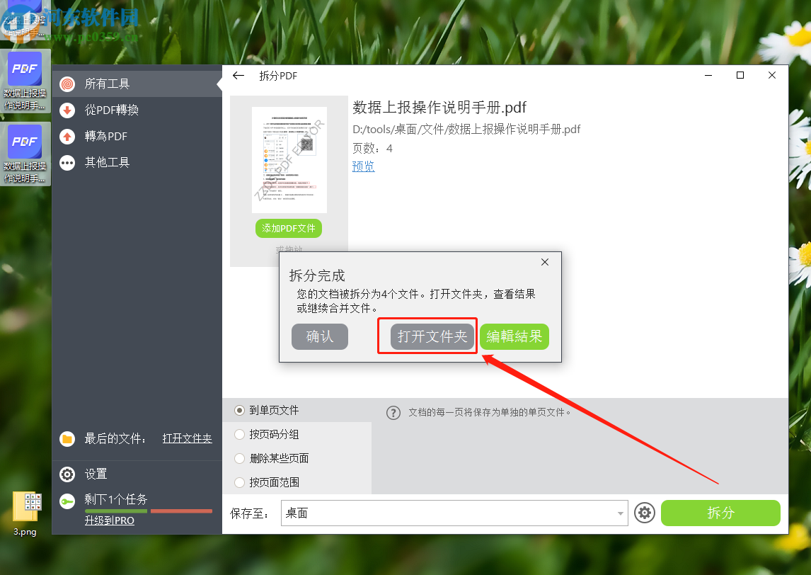 6.等到最后拆分操作完成之后,界面中会出现拆分完成的提示,我们点击打开文件夹即可查看拆分之后的PDF文件。
