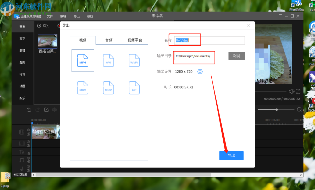 9.最后在这个导出文件界面,设置好想要储存的文件名称和路径即可,点击下方的导出按钮就能将视频导出保存了。