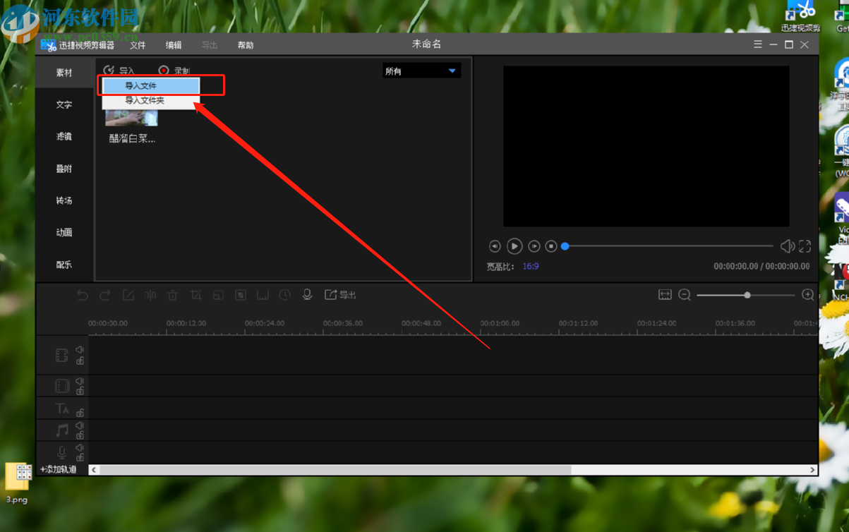 2.点击进入到编辑视频的界面之后,我们点击左上方的导入功能按钮,点击导入即可选择想要导入的视频文件。