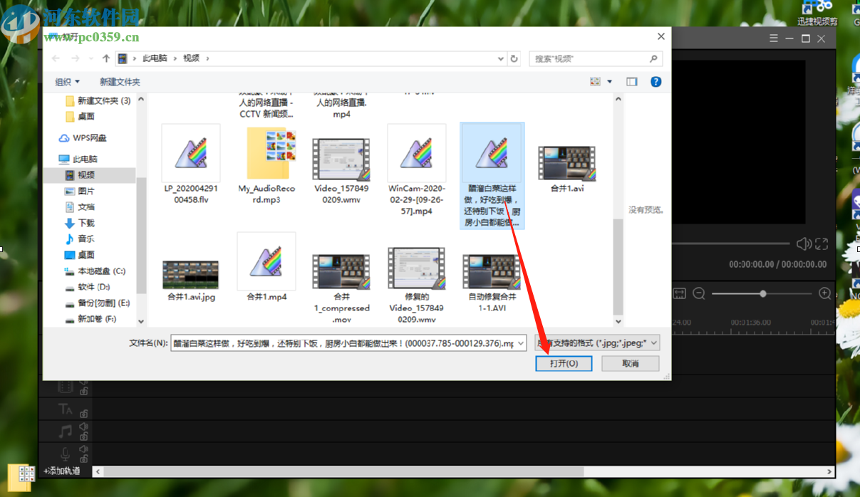 3.点击导入之后下一步就会打开一个选择文件的界面了,在这个界面中我们选中目标视频文件之后点击打开按钮。