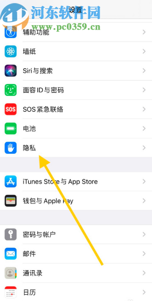 1.首先第一步我们打开手机之后,进入到手机的设置界面,然后在界面中找到隐私这个选项点击进去。