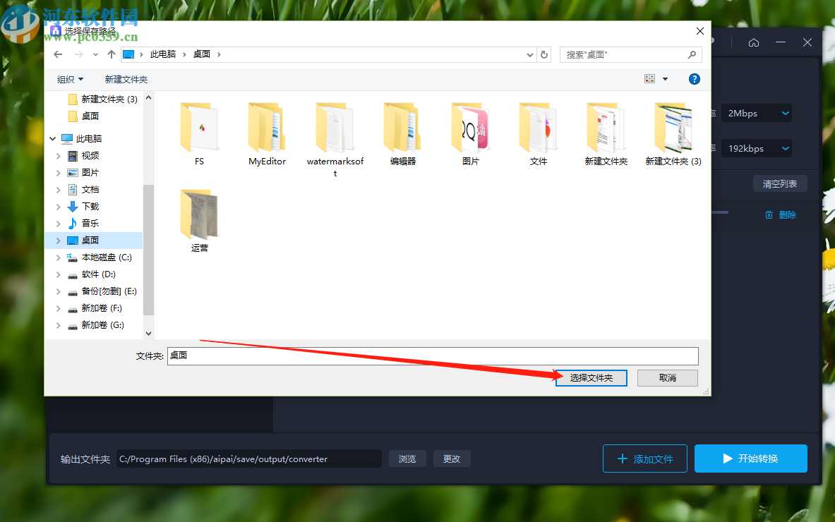 6.点击更改按钮之后,下一步会出现一个选择文件的界面,在这个界面中我们选中目标文件输出路径之后点击选择文件夹按钮。