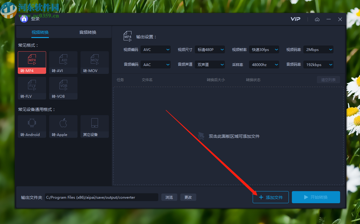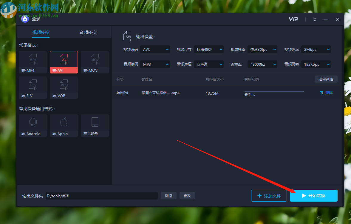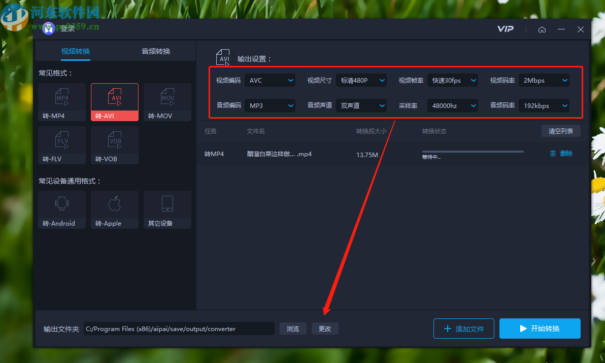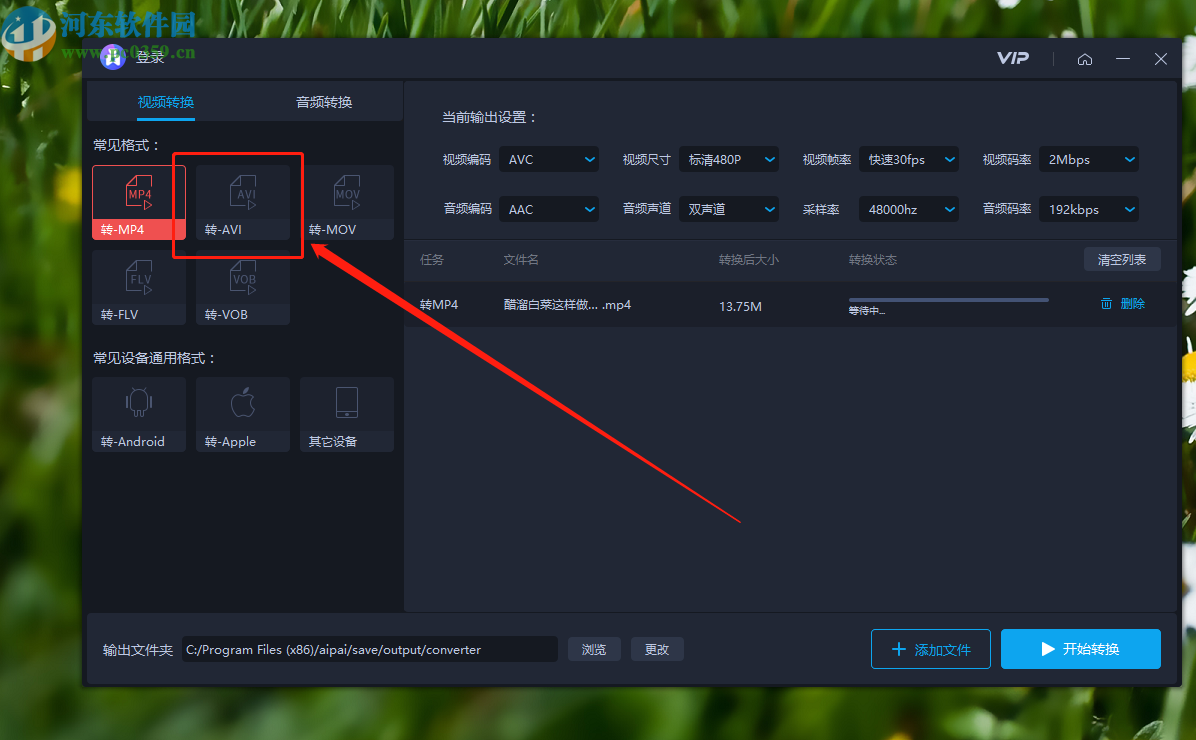 7.最后设置好输出文件路径之后,点击界面右下角的开始转换按钮就可以开始转换MP4为AVI格式的操作了。