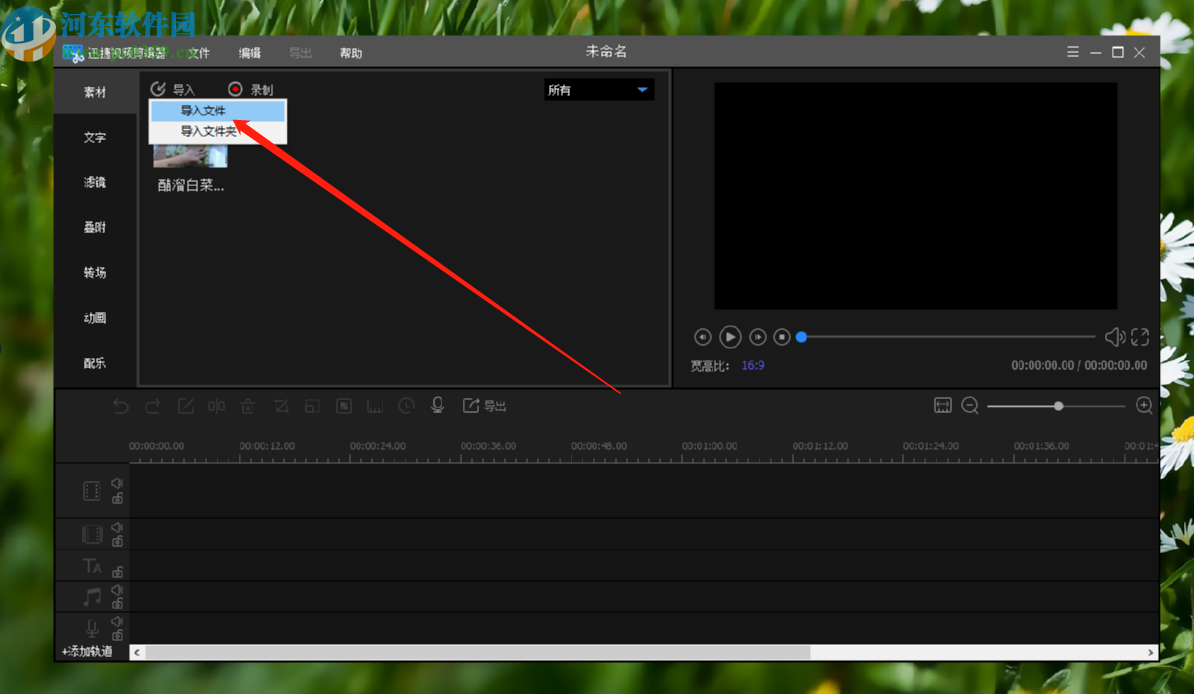 1.首先第一步我们打开软件之后在界面的左上角找到导入选项并点击,点击导入之后,我们在出现的选项中点击导入文件。
