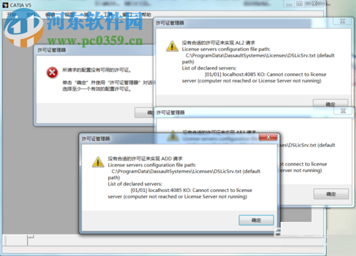 1、用户在打开catia时,可能会弹出如下的“没有合适的许可证来实现xx请求”,具体如图所示。
