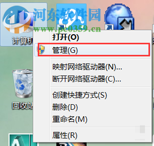 2、用户点击确定关闭后,我们在桌面上鼠标右击“计算机”,在呼出的菜单中选择“管理”。