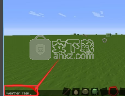 2.然后我们在可作弊模式的世界中就可以开始更改天气了,在界面左下角的位置中输入“/weather rain”,天气就会变成下雨天。