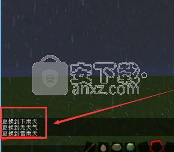 4.最后还有一种天气是雷阵雨天气,有时候捕捉一些动物就需要这种天气,在左下角输入“/weather thunder”就可以了。