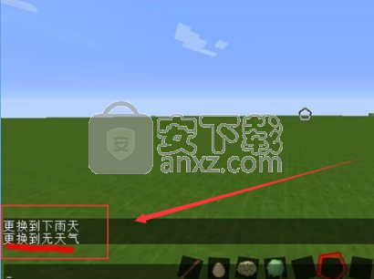 3.如果想要切换成不下雨的天气的话,使用同样的方法在界面左下角输入“/weather clear”,天气就会更换了。