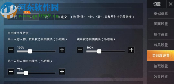 3.在操作按键进行更改设置之后我们需要再调整一下灵敏度设置,因为操作按钮之间距离变化之后也有可能会受到影响,然后将灵敏度调整完成就可以了。