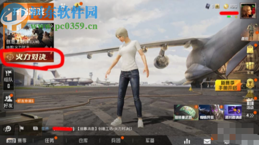 2.进入到游戏主界面之后,我们可以看到界面左侧有一个火力对决字样,这个模式是和平精英游戏中新出的一种玩法模式。