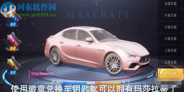 4.获取徽章之后我们在玛莎拉蒂的界面中用徽章兑换玛莎拉蒂车钥匙,兑换之后点击提车按钮。