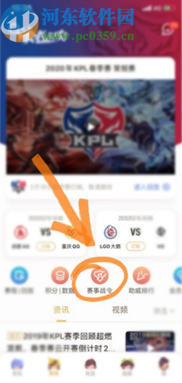 4.另外还有一种进入查看战令的方法就是在王者营地的首页找到首页底部的赛事战令功能图标,点击即可查看当前角色的赛事战令信息。