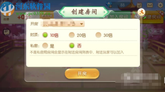 3.点击创建房间之后会看到下图所示的界面,可以设置该房间的封顶倍数、名称和是否影藏等信息,设置完成之后点击开房按钮。