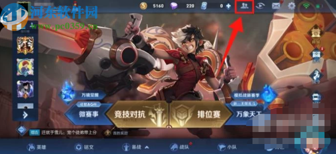 1.首先第一步我们打开王者荣耀手游之后在界面上方找到好友功能图标,然后点击进入到好友功能中。