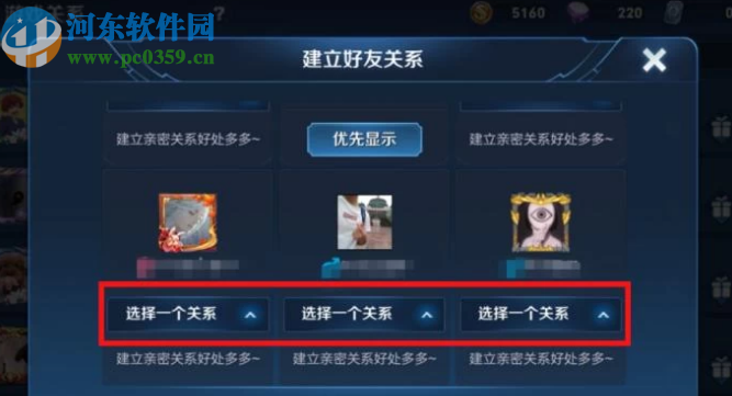 3.点击亲密度关系按钮之后就会打开建立好友关系的界面了,然后在界面中就可以看到可以建立亲密度关系的好友了,点击选择一个关系即可。