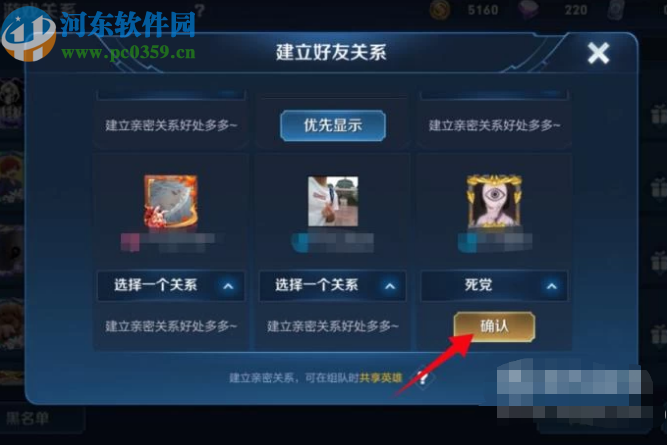 5.选择好自己想要建立的亲密关系之后,点击确认按钮就可以将建立关系的申请发送给这位好友了,等到好友同意关系就建立成功了。