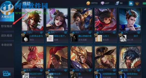2.点击这个播放图标之后就会进入到观战功能界面,进入到观战功能界面之后我们左边的好友观战切换到好友观战界面中。