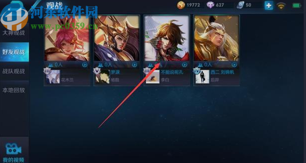 3.切换到好友观战功能界面之后,我们找到自己想要观战的那一个好友,可以看到他使用的英雄,然后我们点击进入到其中。