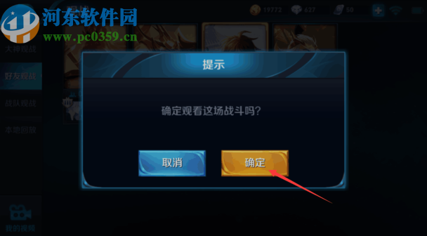 4.点击之后游戏界面中会出现一个询问我们是否观看这场战斗的窗口,然后我们点击确定按钮即可进入。