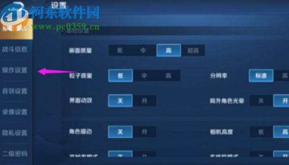 2.点击设置图标之后进入到游戏的设置界面,然后我们在左边的列表中选择切换到操作设置选项界面中。