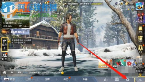 1.首先第一步我们打开手机之后进入到和平精英游戏中,进入到游戏界面之后点击界面右下方的齿轮图标进入到游戏的设置界面。