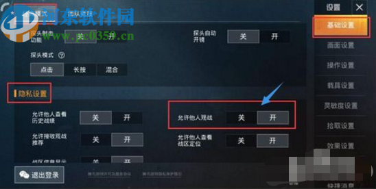 3.进入到设置界面之后我们切换到基础设置模块,然后就可以在界面中看到“允许他人观战”这个功能了,此时功能是打开的状态。