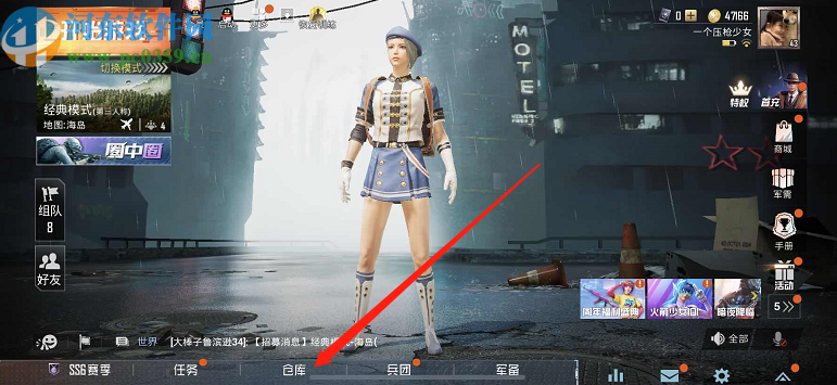 1.首先第一步我们打开游戏之后进入到游戏大厅界面,然后在游戏大厅点击仓库这个功能。