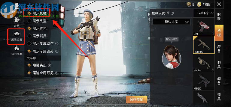 4.紧接着下一步我们点击界面左边的展示设置,然后在出现的大厅展示选项中勾选展示枪械这个功能选项。