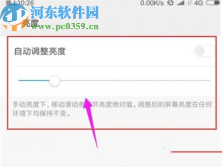 4.最后一步就是进入到亮度显示的界面了,然后我们需要滑动界面中的小圆点来调整手机屏幕显示的亮度就可以了。
