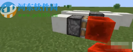 3.之后我们需要在活塞后面的地面上挖一个洞,然后在这个洞里面放上火柴,最后再放一块红石块。将活塞和红石块连接起来。