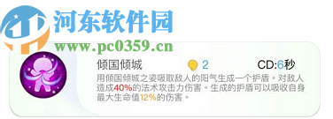 3.二技能是倾国倾城,这个技能可以给九尾明月本身增加一个护盾效果,并且有效的提升了它的生存能力,配合1技能使用非常有效。