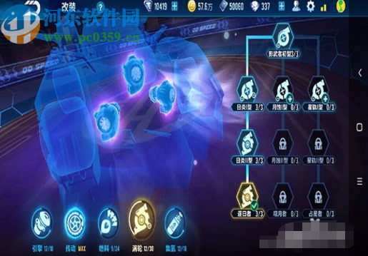 3.然后就轮到赛车涡轮系统的改装了,这个是赛车在释放小喷时的动力,小编推荐的改装方案就是将最左边全部点满。