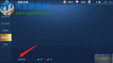 4.最后我们在界面的下方找到开启定位这个功能选项框,然后点击取消勾选他前面的选框,然后在界面中就会不显示附近的人了。