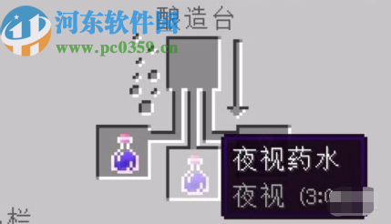 4.最后一步我们只需要将金胡萝卜放到酿造台中,等待酿造完成就可以获得夜视药水了,如下图中所示。