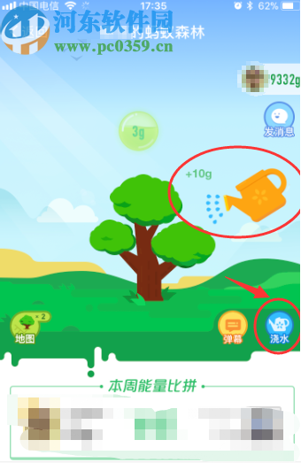 3.点击进入到好友的树苗界面之后,我们就可以在界面右侧看到一个浇水的图标,然后我们点击这个图标就可以浇水了,浇水之后能够让好友增加10g能量。