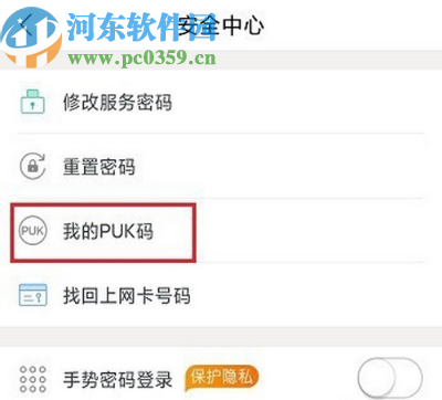 3.进入到安全中心界面之后,我们在界面中就可以看到“我的PUK码”这个功能选项了,然后需要点击进入到其中。