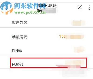 4.最后在我的PUK码界面中我们就可以看到自己的PUK码和一些其他的重要信息了,如下图中所示。
