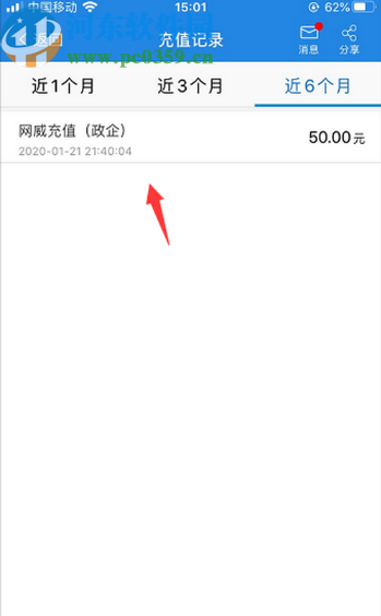 3.点击进入到查看充值记录的界面之后,我们可以看到近1个月、3个月、6个月的充值记录。