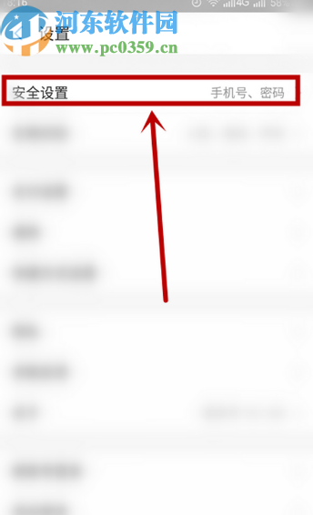 2.点击设置选项之后进入到应用的设置界面,然后在设置界面中找到安全设置选项,点击进入到安全设置界面。