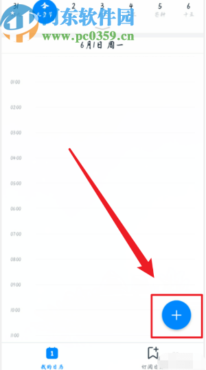 2.进入到日程界面之后,找到界面右下角的添加按钮,如下图中所示,点击之后准备添加一个日程。