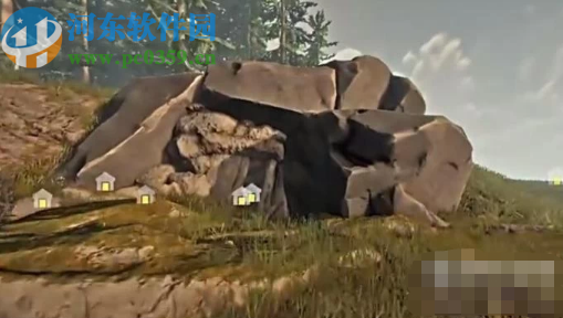 3.看到那个小岛屿之后,我们就会找到一堆石头了,走近一看会发现有一个洞口,到达洞口之后我们按下键盘E键就可以进入到洞穴中了。