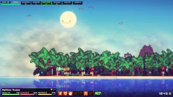 一款2D横版Roguelike游戏佳作。在游戏中玩家将扮演一名海盗船长,招募船员,建造属于自己的独特战舰,探索未知的岛屿,寻找独特的宝藏,获得经验升级并学习特殊的技能,购买和强化武器装备或道具,击败其他海盗并掠夺他们的财富,最终成为整个海域最强的海盗!