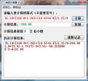 软件支持大括号、中括号、小括号的算式的加、减、乘、除和指数运算,您还可以自定义结果保留的小数位数,并支持将算式列表输入到一个文本文件里导入本软件后进行批量计算,并能够无限保留之前的计算结果还能够输出到文本文件。