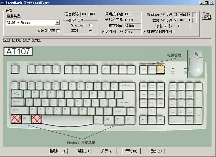 一个小巧的检测键盘的软件,有了它你可以用最快的时间来检验你键盘上的键位是否好用,这样在买键盘的时候带上它就不会被奸商给蒙混过关了,你可以根据软件测试的参数来辨别键盘的优劣,而且还可以测试你的打字速度呢