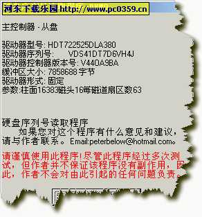 读取硬盘型号、序列号、固件版本号、缓冲区大小等参数。